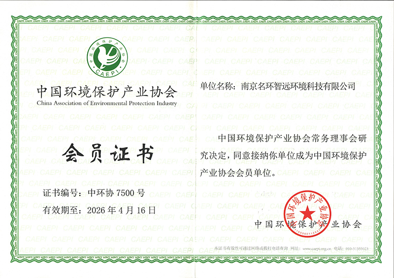 中國環(huán)境保護(hù)產(chǎn)業(yè)協(xié)會(huì)會(huì)員證書